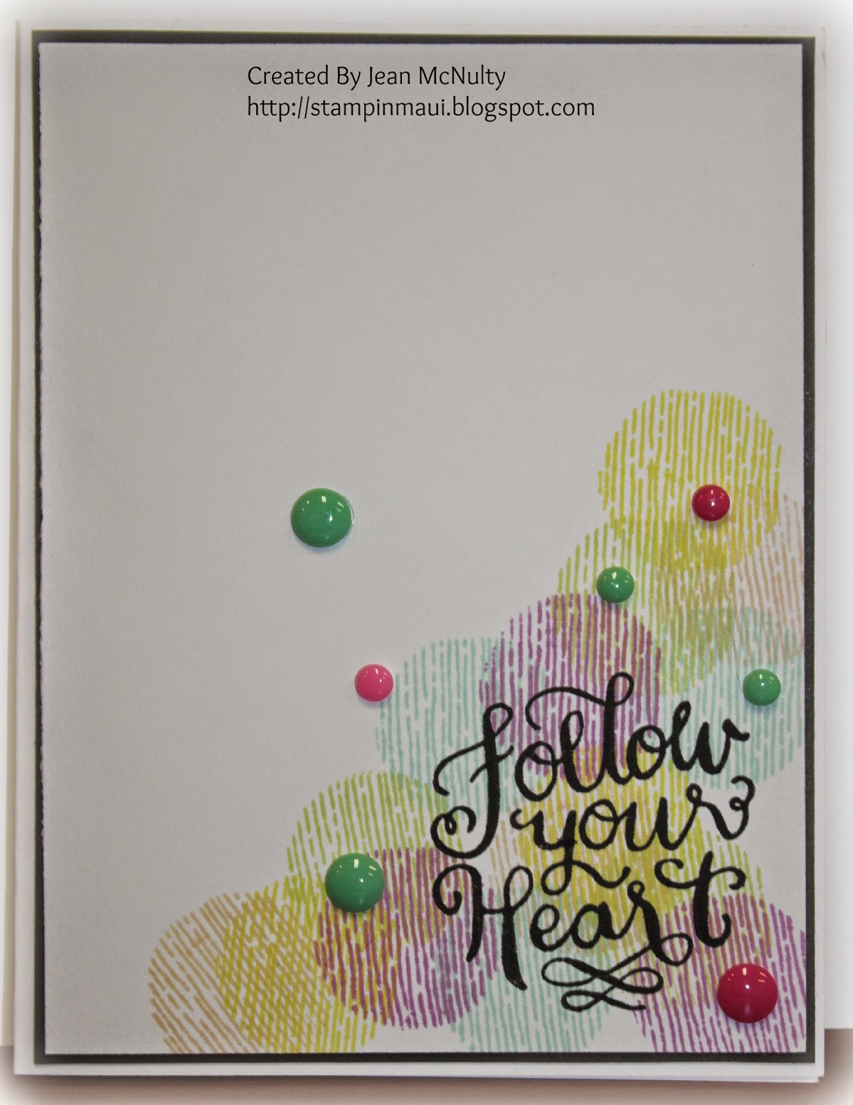 I heat embossed the flower randomly on Daisy White cardstock with white embossing powder. I then used 2 of our new colors to sponge ink over the embossed design. It resists the ink so that the flowers pop. I then cut a banner and stamped the sentiment and adhered with foam tape and applied sequins to give it a bit of bling:) I am loving our sequins!!!